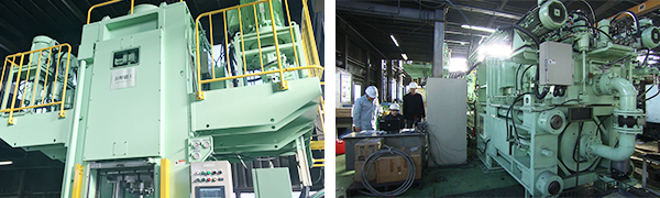 工場内の一角に設置されているのは「超塑性成形装置」。九州大学と共同で研究を進めています。ここで開発したのが、素材の中でも加工が難しいとされるニッケル超合金の新工法で、材料の結晶粒を微細化する「高圧スライド工法」と呼ばれます。ここには長野鍛工が得意とする鍛造技術が生かされていて、低コストで高精度な部品製造が可能になるということです。