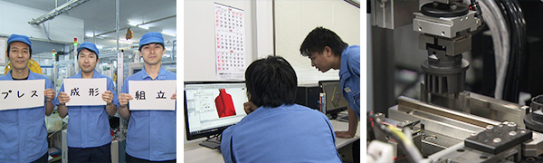 「プレス」「成形」「組み立て」の高い技術で一貫生産し、生産設備や検査装置の一部は内製化を進めることで顧客の要望に応えています。