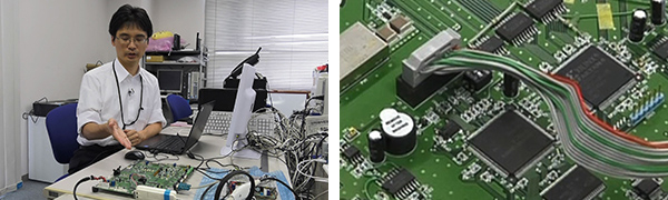 「モーターを動かしたり、様々なセンサーからデータを拾ったりと、その指令を送るアプリケーションを作成しています。」担当者がパソコンでデモンストレーション用の機器をパソコンで制御しながら、ソフトの重要性を説明してくれました。