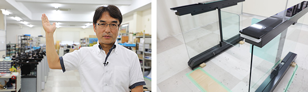 「会社の『顔』ともいえる、ビルの入り口に置くものだから」と、ガラスを多用しデザインを重視、「オフィスビルにもマッチする自信作」と岡本副社長がいう「クリスタルゲートシリーズ」は、長野県が認定する「NAGANOものづくりエクセレンス」に2017年認定されたほか、過去にはグッドデザイン賞も受賞しています。