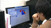 山間部の川や用水路などを利用して発電する小水力発電。小水力発電はCO₂排出量が少ないため、地球温暖化防止の面からも注目されています。飯尾研究室では15年ほど前から発電装置に使用する水車や発電機などの研究を続けています。学生たちはシミュレーションや実験などを行って性能を解析し、水車の設計などに生かしています。天候に左右されにくいため、水車が回っている限りは発電できるという小水力発電。製造コストを意識し「形が単純でありながら、高性能を目指している」と飯尾准教授は話します。