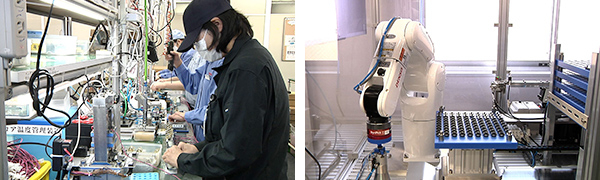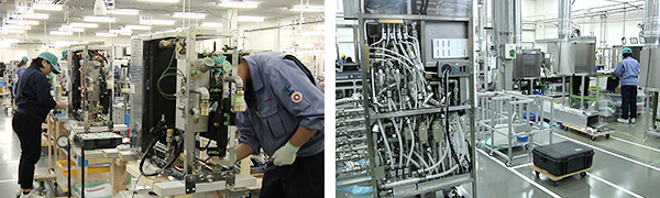 半導体や液晶パネルの製造過程で使用されるのが精密温度調節装置。伸和コントローズの装置は世界的にも高いシェアを持ちます。 その役割について佐々木・長野事業所長は「温度や湿度を一定に管理しないと製品にばらつきが出る。 一定の環境を保つための装置」と話します。 同社では好調な需要を背景に、新工場の建設も計画しています。
