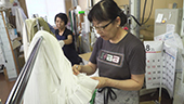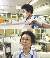 坂城町に本社と工場を置くラジエルは、オーダーカーテンの生産販売を一貫して行っています。幅広い年齢層が働くとても元気な会社で、女性を中心に10代から80代まで55人が働いています。花立正子さんは何と79歳、今も現役で働いています。その花立さんにお話をうかがいました。