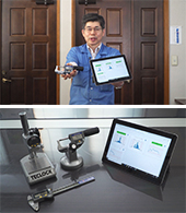岡谷市のテクロックは、昭和25年の創立当初から精密測定機器の開発、製造、販売を行っているものづくり企業。時代に対応した画期的な製品の開発が行われています。今年9月に発表された「スマートメジャー・サーフェスキット」は、タブレットと連動させた測定器で計測データをクラウド環境で見ることができます。