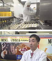 今、力を入れているのはマッスル餃子。インターネットと工場併設の直営店で販売されている商品で、健康を意識している人をターゲットに開発されました。鶏のささみを使い独自の製法で生み出した高たんぱく、低カロリーな餃子で、お年寄りや育ち盛りの子どもたちにも人気です。