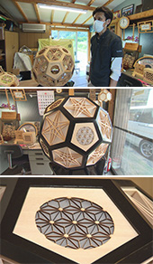 六角形の面は、伝統的な組子細工で、『りんどう』の柄をあしらい、