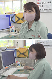 管理部の菅沼綾さんは「お客様から依頼のメールが来るので、見積もりを作り、現場に製作の依頼の手配をする仕事をしています。日々、仕事の内容が違い、同じ仕事がないので