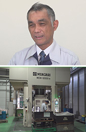 つづけて片倉社長は、「フォーマーは、一回の成型の中で、5段階のプレスが一気にできます。その繰り返しで、1分間に60個~100個の製品を作ることが可能な機械です。フォーマーで出しえないところを、縦型プレスで補完したり、フォーマーで一貫でできるのは、フォーマーで一発でやってしまったりと、選択肢が自由にできやすいということがあります。」と話していました。