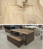 家具の設計から加工も行う土屋憲雅さんは、無垢材ならではの良さ、加工の難しさを熟知しています。土屋さんは「木は、実際に生きていたものなので、動きは出てしまいますが、それも裏を返せば、魅力の一つでもあるので、あまり工業製品のようなものではなくて、木のぬくもりを残すような加工を心掛けています。」と話していました。
