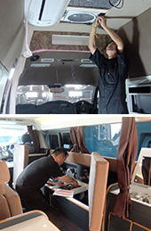 「派手な羽を付けたりエアーブラシでキラキラの絵を描いたり、ベッドやシャンデリアを付けたり…そういう車が流行った時期もありました。そのころから、車内のソファーも家具も床もほぼ全部自社で作っています。ベースとなる車に断熱材を施して照明を付けて新たにバッテリーも設置すれば、家の中と変わらずとても快適に過ごすことができます」。
