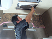 柏原雅之さんは主にオーディオ関係の取り付けと修理関係を担当しています。