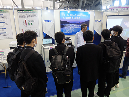 「本メッセは販路拡大が一番の目的です。それと同時に人材育成も心掛けています。」と諏訪圏工業メッセ実行委員会 推進本部長の小坂和夫さん。今年も3,000人を超える学生が来場しました。興味のあるブースへ積極的に声を掛けていく子どもたち。これからの地元のものづくりを 若い人たちにしっかりと見てほしいと願っています。