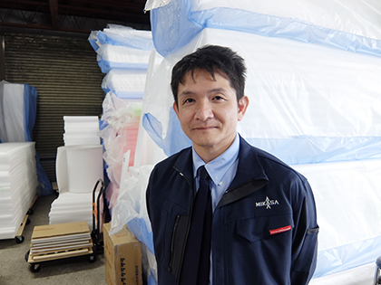 来年、創業70周年を迎える松本市のミカサ。梱包資材や工業用品、梱包機械など幅広い分野の製品を手掛けています。中でも得意とするのは緩衝材(製品の破損を防ぐための資材)。「最近では物流コストの削減に繋がるものや、環境に配慮した商品が求められています。」と営業部次長の酒井啓さん。お客様からの様々な要望に対して真っすぐに向かっていきたいと日々心がけています。
