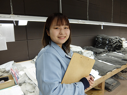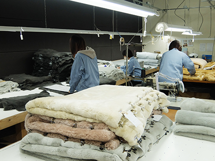 「ムートンの毛質や革質は1枚1枚違うので、微妙な個体差を見極めながら製品にしています。技術と経験を積み上げていく必要がありますが、そもそも"毛皮の縫製"は日常生活にはない仕事なので、誰もがゼロからのスタートです。新人の成長を実感できることがうれしいです。」と、縫製担当の大森洋子さん。