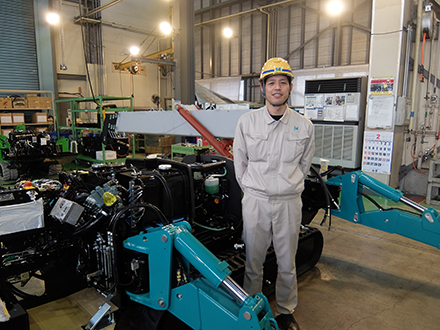 産業用機械メーカーの前田製作所は、高い技術力と優れた品質管理を特徴とする企業です。主力製品の『かにクレーン』を生産している工場にお邪魔しました。製造業務部業務課の宮﨑和彦さんは、部品の調達や生産管理を担当しています。「人と接する機会が多いため、コミュニケーションの取り方など難しい面はありますが、その分やりがいがあります」。