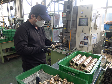 「耐震型サドル付き分水栓」は、地震による排水管への過度な負荷を抑制します(この画期的な製品は代表取締役社長の重野啓司さんのアイディア!)。「応急給水ユニット」は、災害時やメーター交換時、バイパス機能を使うことで断水せずに水を供給できます。災害対応製品の開発にも力を入れ、高い評価を得ています。