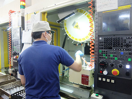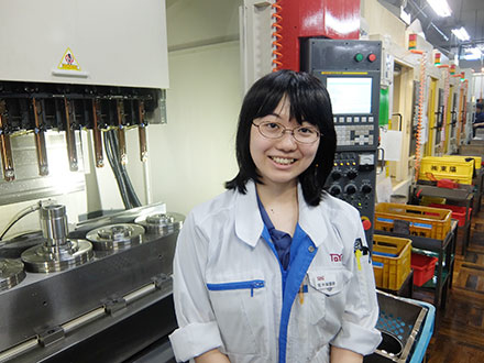 塩尻市の東陽は、60年以上に渡って精密部品や工具の製造を手がけています。製造課の荒木咲里奈さんは、マシニングセンタ(回転工具を使用することで様々な切削加工が1台でできる工作機械)でアルミの切削加工をし、主にカメラ用レンズの部品を製作しています。「高品質の製品を作ることができるよう微調整を繰り返すのはもちろんのこと、検査の時などでも傷をつけないように製品の取り扱いに気を付けています。」