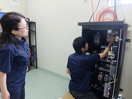 「お客様の声を活かして滞りなく仕事を進めること、納入した制御盤の不具合にはすぐに対応できることを心がけています。」と、長嶋美華さん。