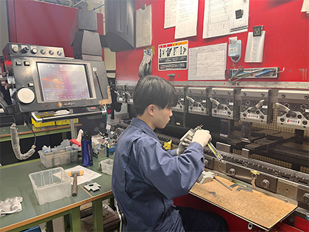 「自動車や携帯電話、自動販売機など、生活を豊かに便利にする道具はいろいろあります。その道具を作るための機械を作るための部品を作っています。表立っては出てきませんが、実は様々なところで板金は使われています。」と代表取締役の宮川岳洋さん。
